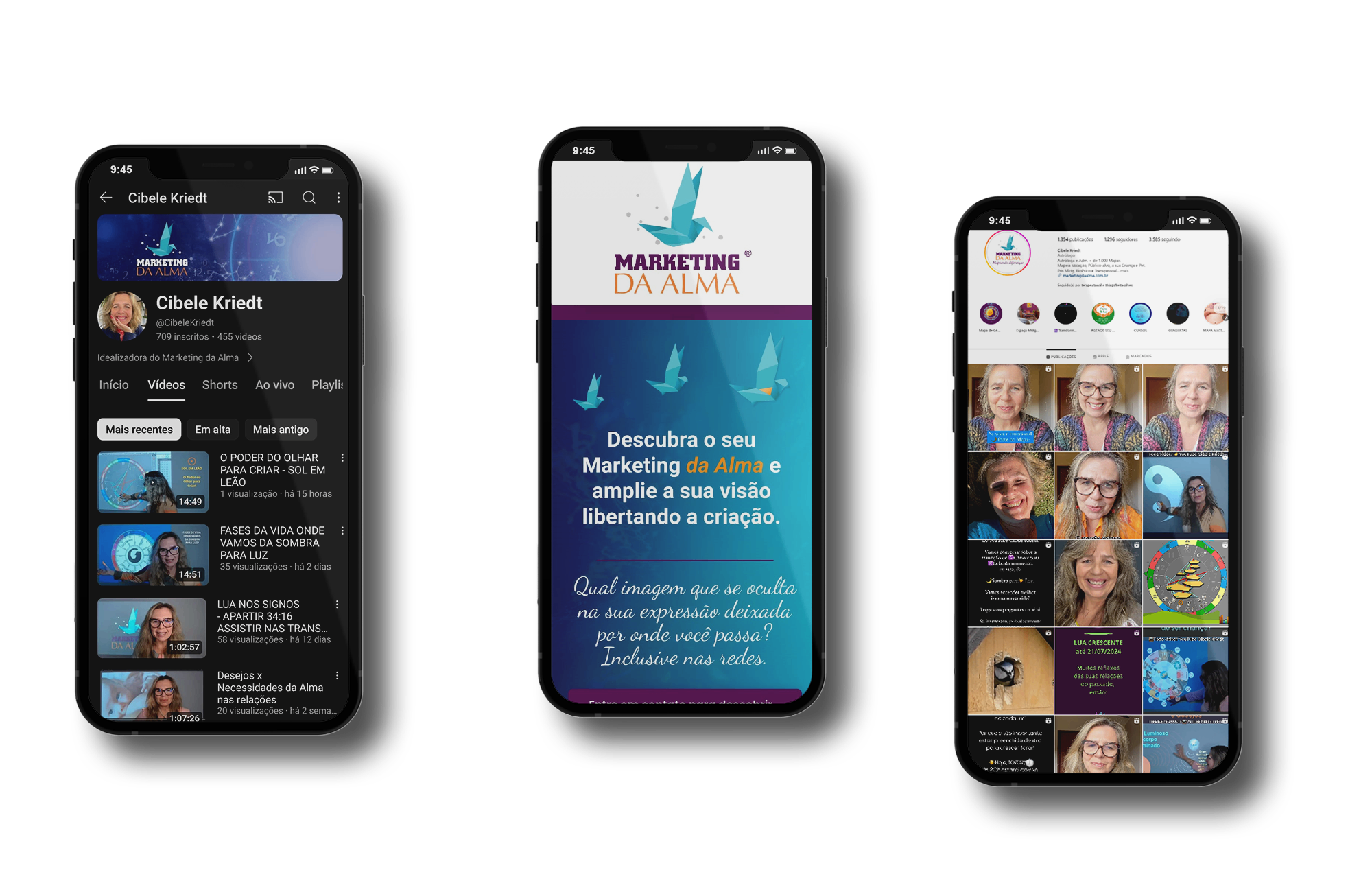 Desde 2017 no Instagram @marketingdaalma com 1.295 seguidores e 2019 no YouTube @CibeleKriedt com 711 inscritos e 45.702 visualizações no canal.